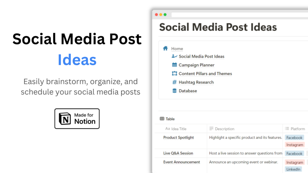 - All-in-One Solution: Manage your content calendar, track your progress, and store all your ideas in one place. No more juggling multiple tools and platforms.