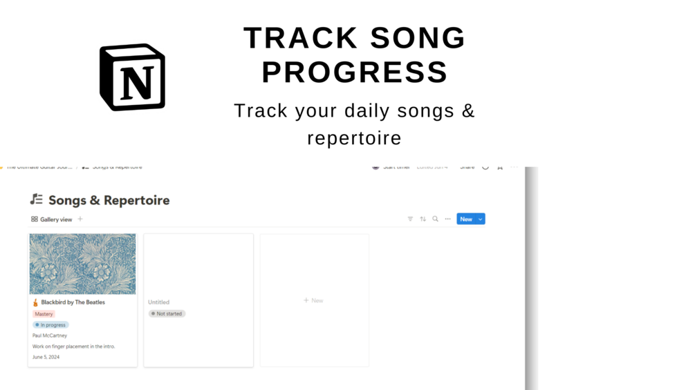 - Accelerate Progress: Track techniques, songs, and progress over time, allowing you to see your improvements visually.