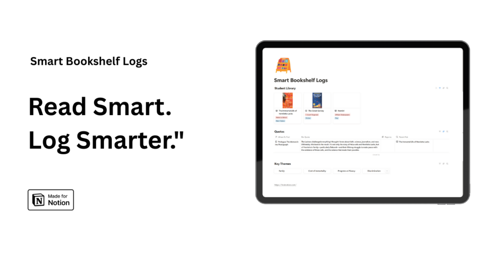 Smart Bookshelf Logs is a beautifully designed, easy-to-use Notion template that helps you track, organize, and reflect on every book you read — so you can retain more, apply more, and grow smarter with every page.